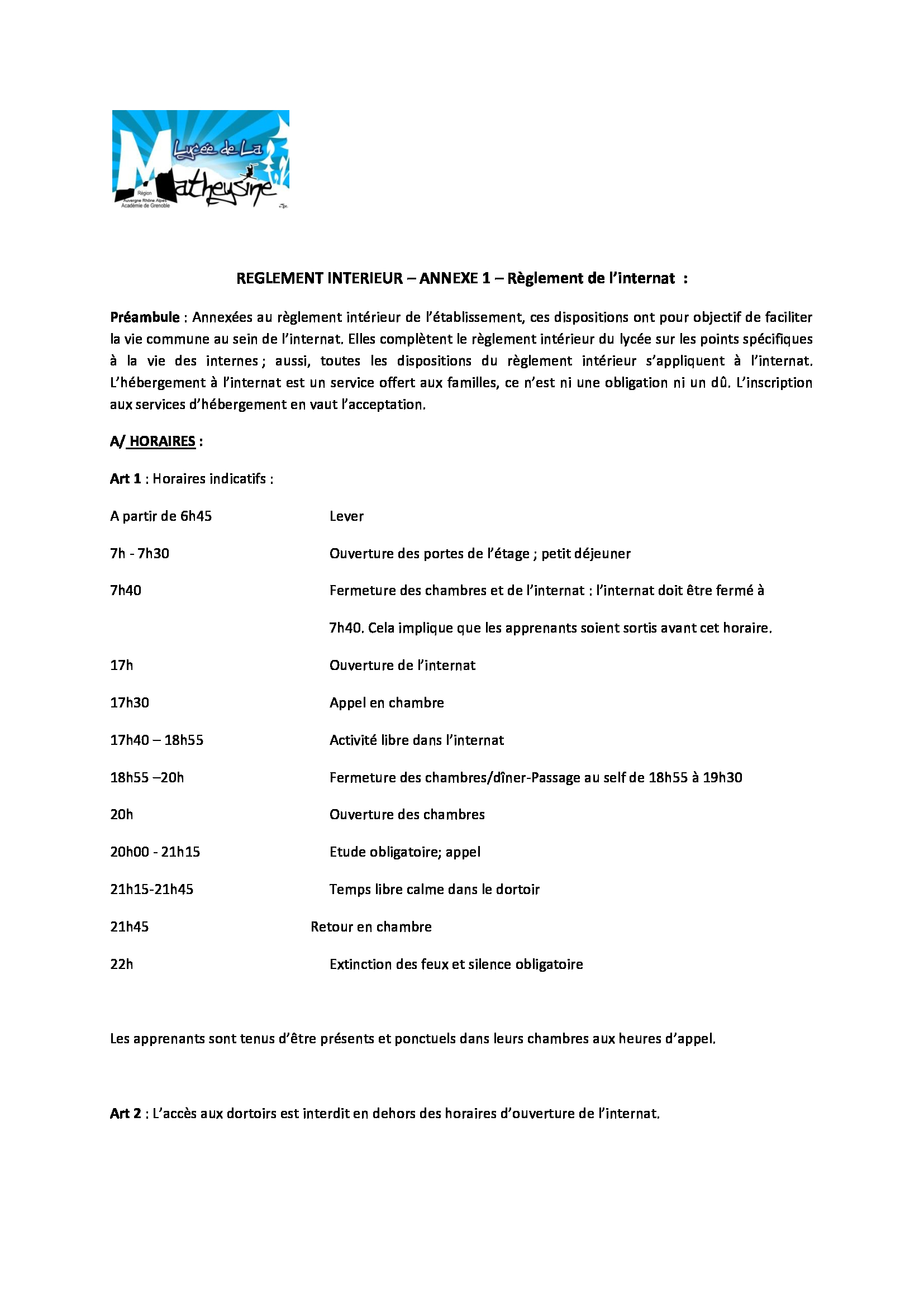 La rubrique Règlement de l'internat - JUILLET 2025 possède déjà une page d'accueil. Souhaitez-vous la remplacer ?