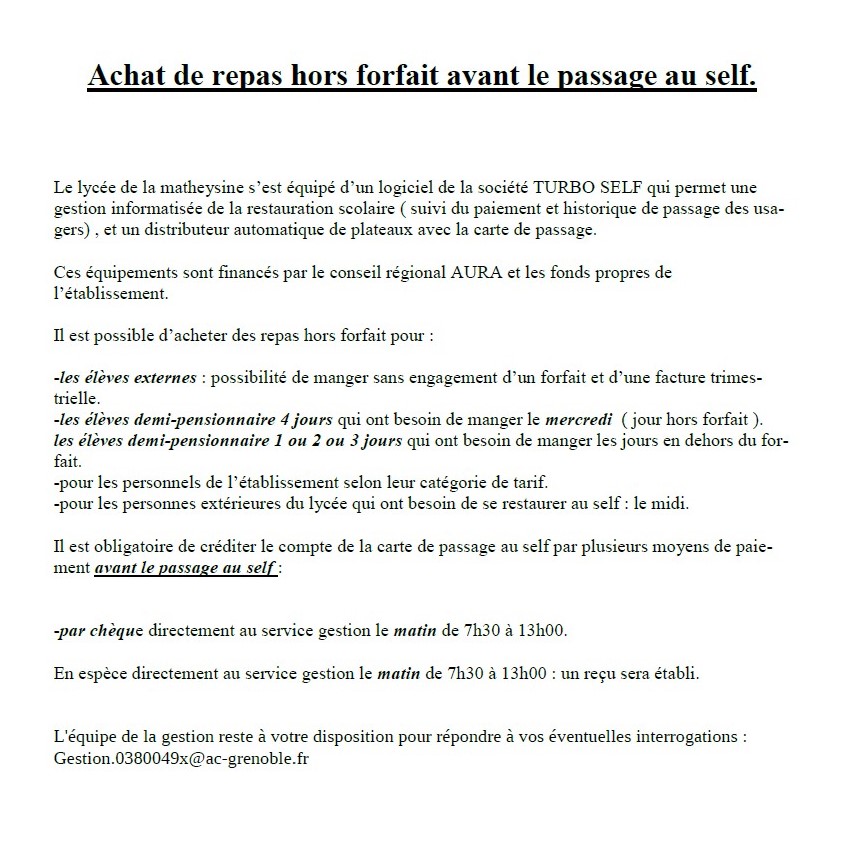 La qualité de demi-pensionnaire est choisie au moment de l'inscription. Les familles ont le choix entre plusieurs forfaits de 1 à 5 repas par semaines.