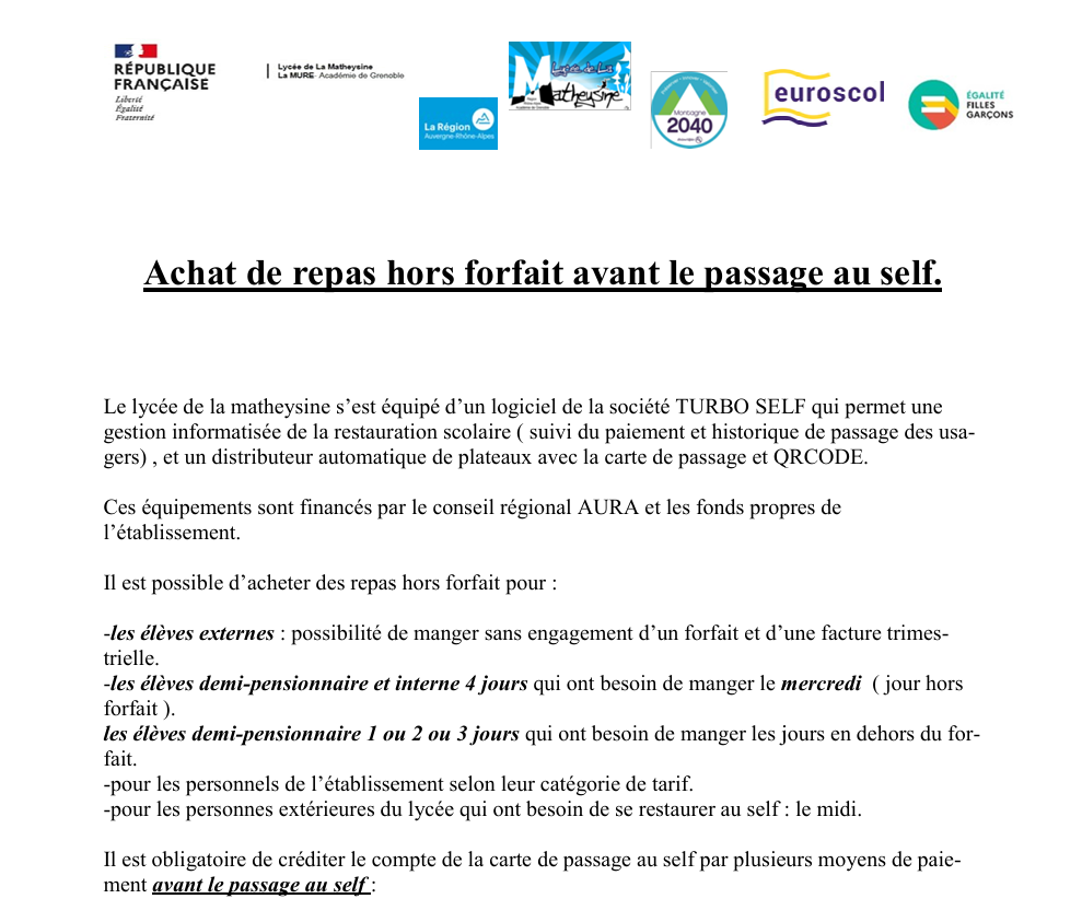 -paiement en ligne sur l’application Turboself : uniquement pour les usagers du lycée.